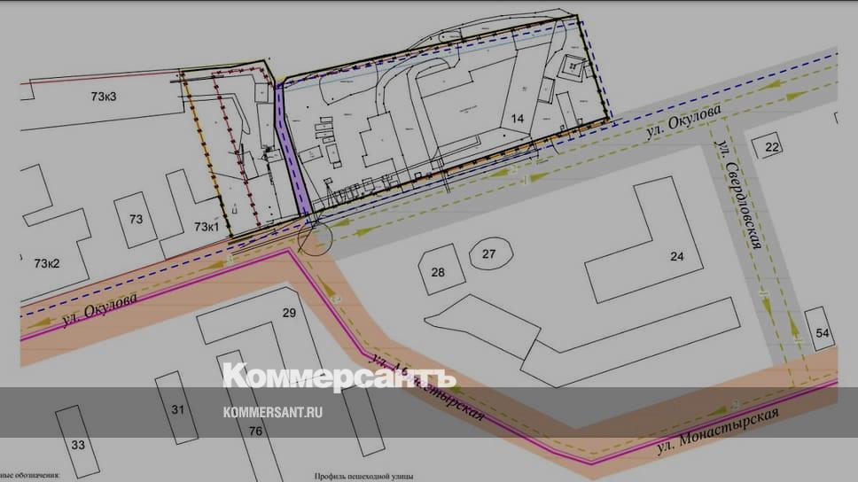 В краевом минимуществе пояснили, что пешеходная улица, проходящая между промышленным предприятием и гостиничным комплексом на ул. Окулова, 14, будет иметь ширину до 7 м. Протяженность этой улицы составит 73 м. «Размещение иных объектов капитального строительства, кроме улично-дорожной сети, не планируется»,— добавили в министерстве.