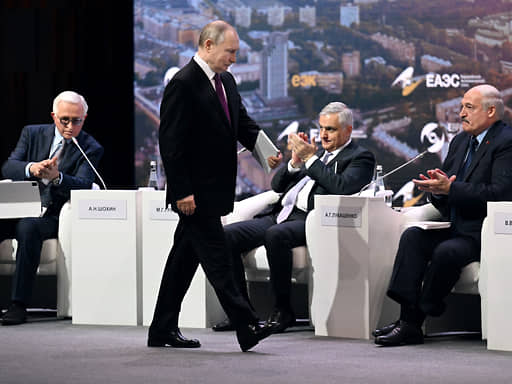 24 мая президент России Владимир Путин вместе с коллегами по ЕАЭС принимал участие в пленарном заседании Евразийского форума, и специальный корреспондент “Ъ” Андрей Колесников отмечает, что президент Казахстана Касым-Жомарт Токаев прямо на сессии покусился на святое — на особые отношения президента Белоруссии Александра Лукашенко с президентом России Владимиром Путиным. И не опасался при этом ставить под удар само существование ЕАЭС. А может быть, и желая поставить.