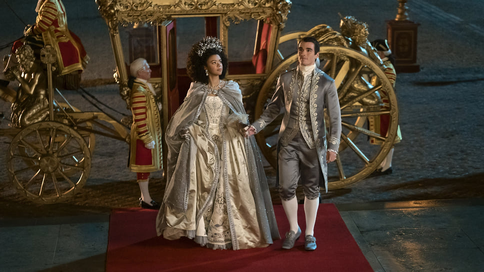 Акцент в повествовании, как вообще во всех исторических любовных романах Джулии Куинн, по которым снимается сага, сделан на истории любви. Шарлота (ее играет Индия Риа Амартейфио) и король Георг III (в исполнении Кори Милкриста) показаны в самом начале их совместного пути как супругов. И потому главные споры, конечно, идут о том, был ли на самом деле болен реальный Георг III (да, был) и насколько этично было предавать огласке все его страхи и слабости (почему нет, дело сильно прошлое). Не менее интересен и «Великий эксперимент», который якобы имел место в 1770-е и заключался в том, чтобы ввести в высший свет людей с темной кожей, богатых аристократов из африканских королевств, окончивших Итон и проживающих жизнь обычных английских джентльменов. Это все настолько забавно, что смотрится очень занятно и свежо.