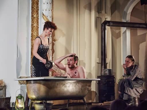 Интересно, что предыдущая работа Писарева и Урсуляк — «Кабаре» в Театре наций — говорила примерно о том же времени, 1920–1930-х годах. В России свершилась революция и назревала эпоха террора, в Германии набирала силу нацистская идеология. Обе постановки — о простых людях на разломе истории, которые пытаются жить и выживать, любить и веселиться, несмотря ни на что. В общем, обо всех нас. Но там интонация Салли Боулз, буквально кричавшей в финале «Life is a cabaret!», была по-настоящему надрывной, трагической. Здесь последними словами Зойки становятся «Прощай, моя квартира!». Не знаешь, плакать или смеяться. Нет, все-таки квартирный вопрос испортил москвичей.