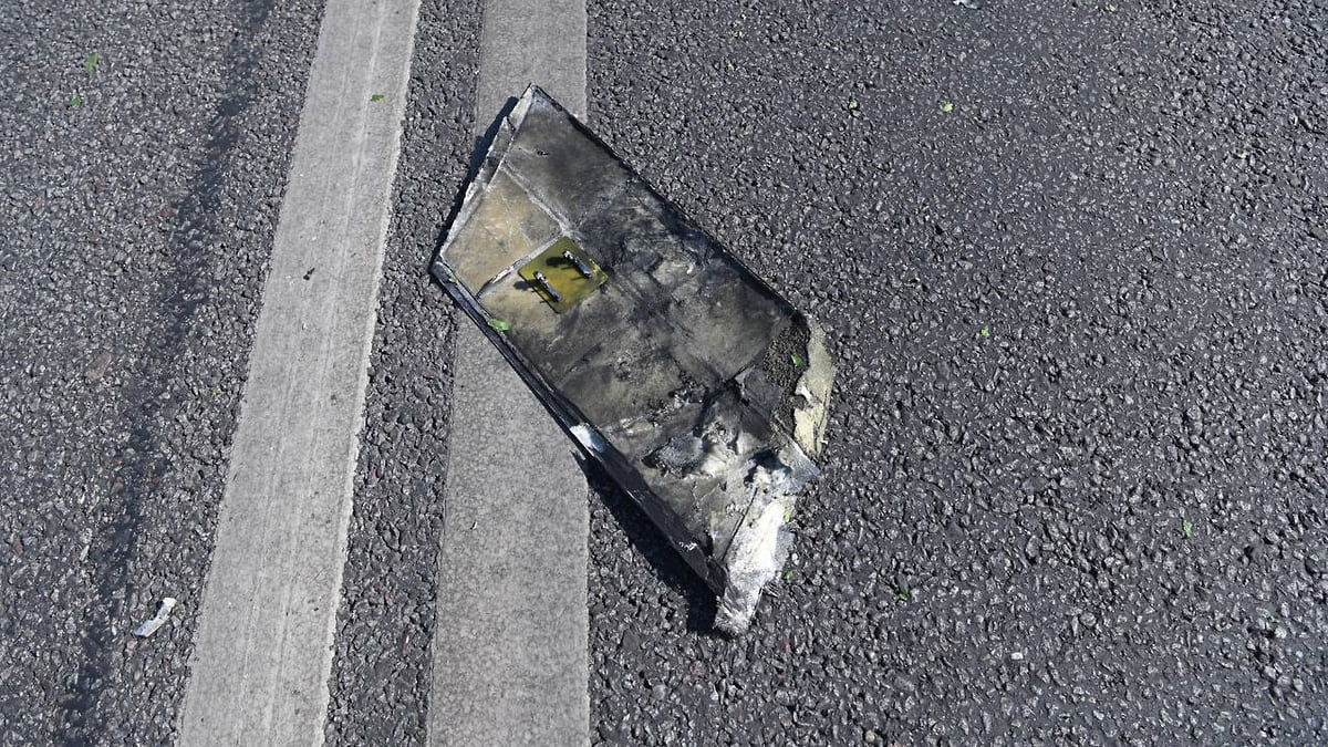Обломок от, предположительно, беспилотника на проезжей части в Белгороде