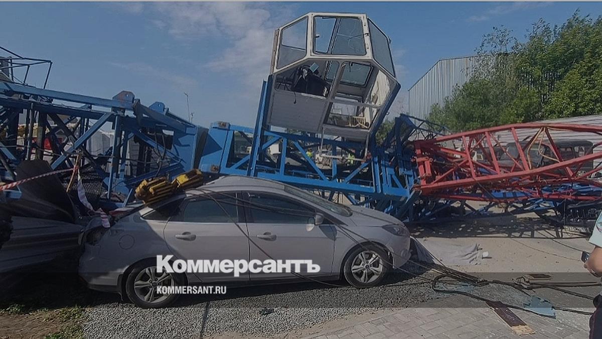 Строительный кран упал в Новосибирске на припаркованные автомобили