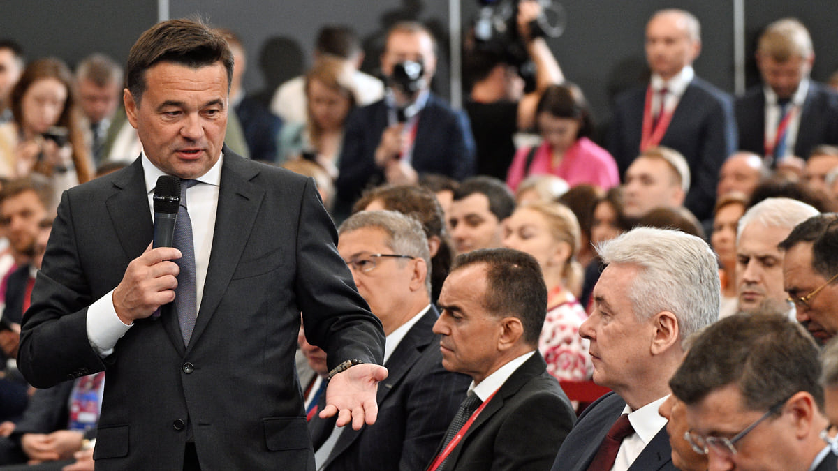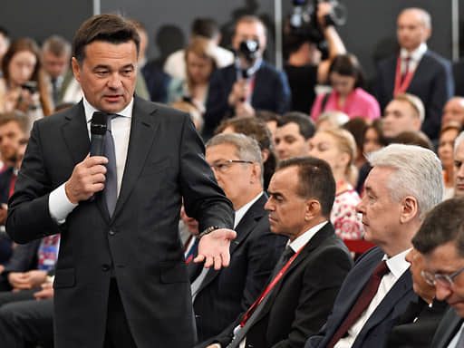Губернатор Московской области Андрей Воробьев, губернатор Краснодарского края Вениамин Кондратьев и мэр Москвы Сергей Собянин