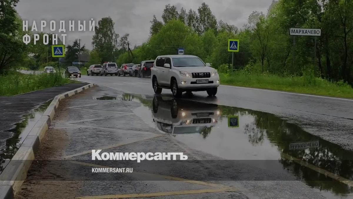 «Проезжая часть покрыта трещинами, продольные швы разрушаются. У деревни Горохово вот-вот упадут ограждения. На остановочных комплексах беда. Где-то асфальт отваливается кусками, где-то между покрытием и бордюрами спокойно влезает рука взрослого человека. У деревни Мархачёво перед остановкой образуется огромная лужа. Добавим сюда незаделанные вырубки, отсутствие части знаков»,— сообщили в ОНФ 30 июня 2023 года.
