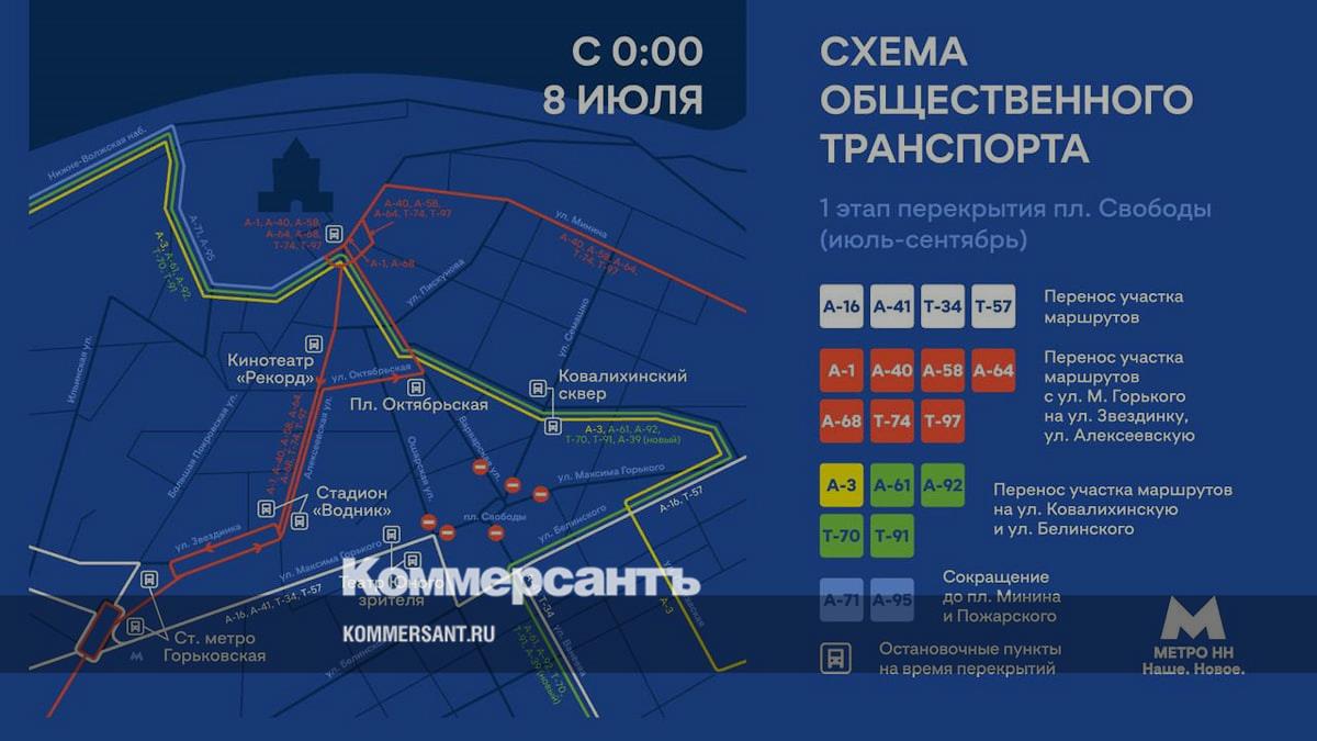 На время перекрытий изменятся маршруты общественного транспорта, появятся новые остановки у стадиона «Водник», Октябрьской площади, центра культуры «Рекорд», Ковалихинского сквера и Театра юного зрителя.