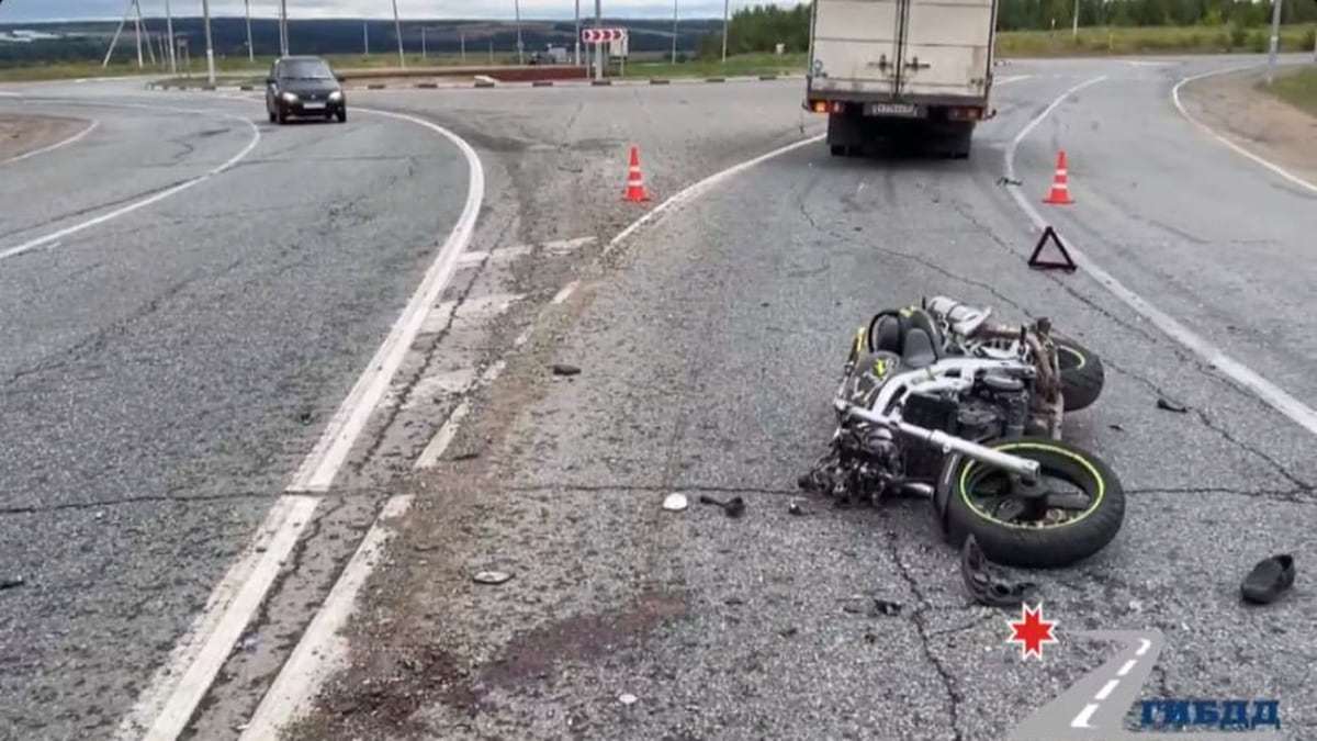 В Завьяловском районе Удмуртии на 4 км дороги «Завьялово – Гольяны – Аэропорт» днем 15 июля произошло ДТП. Как сообщает ГИБДД республики, по предварительным данным, водитель мотоцикла Suzuki, не справился с управлением и выехал на встречную полосу, где столкнулся с грузовиком MAN.