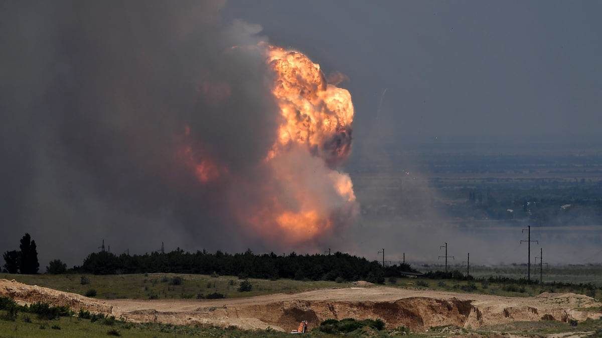 Первые сообщения о пожаре на полигоне «Старокрымский» в Кировском районе полуострова, на котором, по данным источников «Ъ», хранили артиллерийские снаряды, 82-миллиметровые мины к минометам «Поднос» и «Василек» и стрелковое оружие, поступили в МВД 19 июля в начале шестого утра. Из-за детонации снарядов пожарные не смогли оперативно приступить к тушению огня.