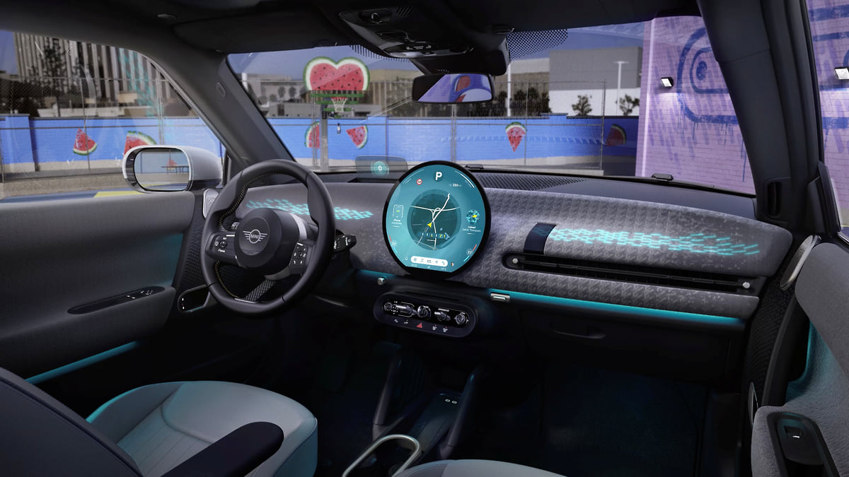 В новом поколении хэтчбека дизайнеры сосредоточились на упрощении интерьера. Электромобиль получит компактное рулевое колесо с массивными спицами, с вынесенными на них элементами управления, а также круглый экран в центре передней панели. Под OLED-экраном появится блок с традиционными для MINI тумблерами.