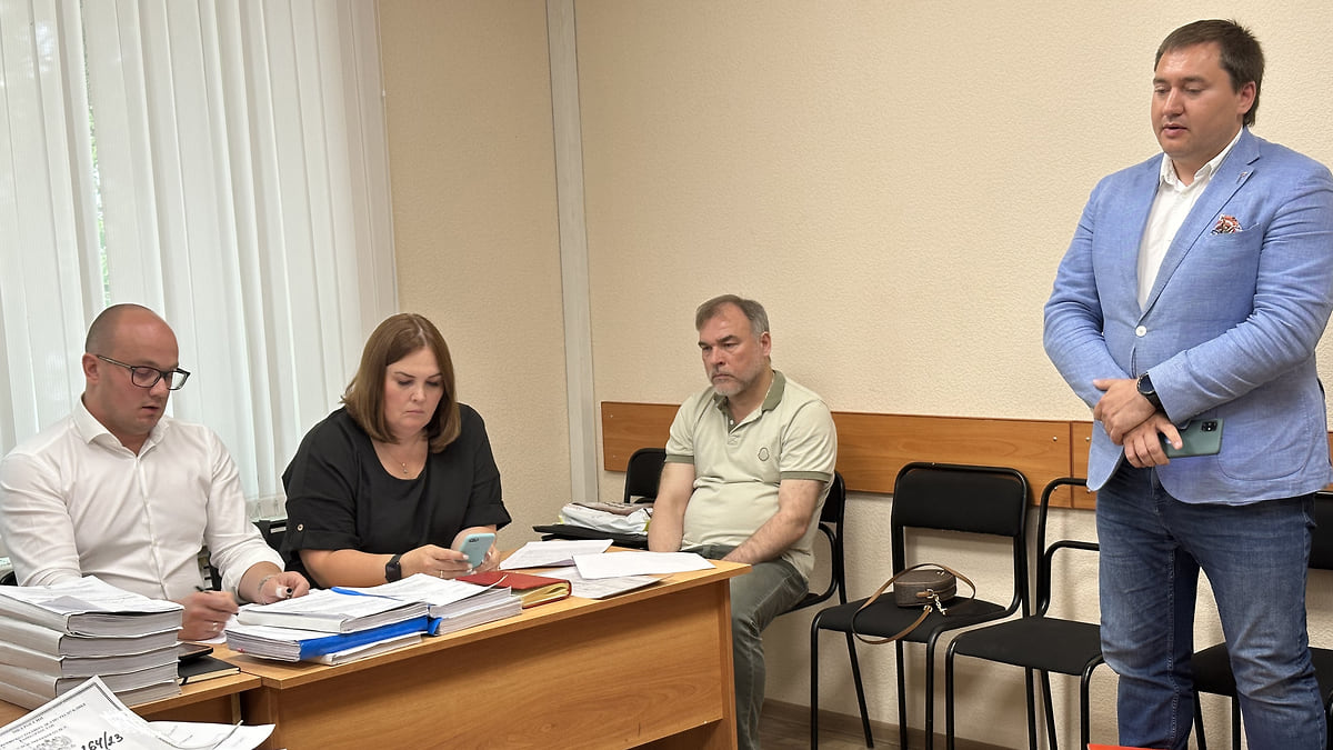 Бывший владелец сети шинных центров «Таганка» Андрей Смышляев (третий слева) в суде