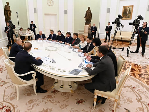 — Если что-то не так, я вас попрошу: вы меня, конечно, поправьте,— попросил участников встречи в Представительском кабинете Кремля Владимир Путин.— Потому что в этом и цель нашей сегодняшней встречи, чтобы я услышал, совпадают ли те оценки, которые есть у нас, с теми, которыми вы располагаете, имея в виду, что вы прямо в коллективах работаете.
