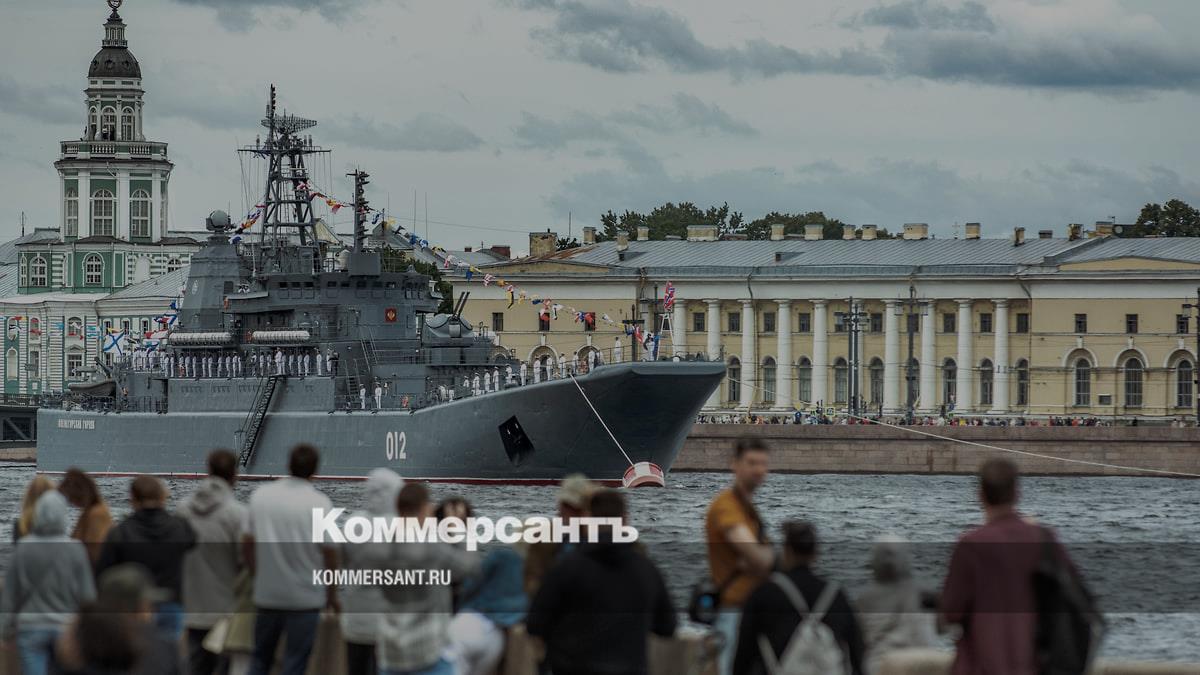 БДК «Оленегорский горняк» на репетиции военно-морского парада в Петербурге (июль 2021 года)