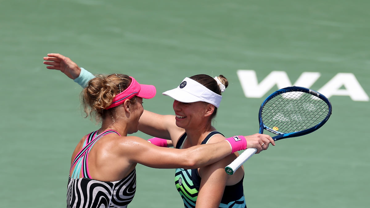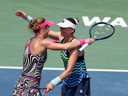 Лаура Зигемунд (слева) и Вера Звонарева после победы на турнире