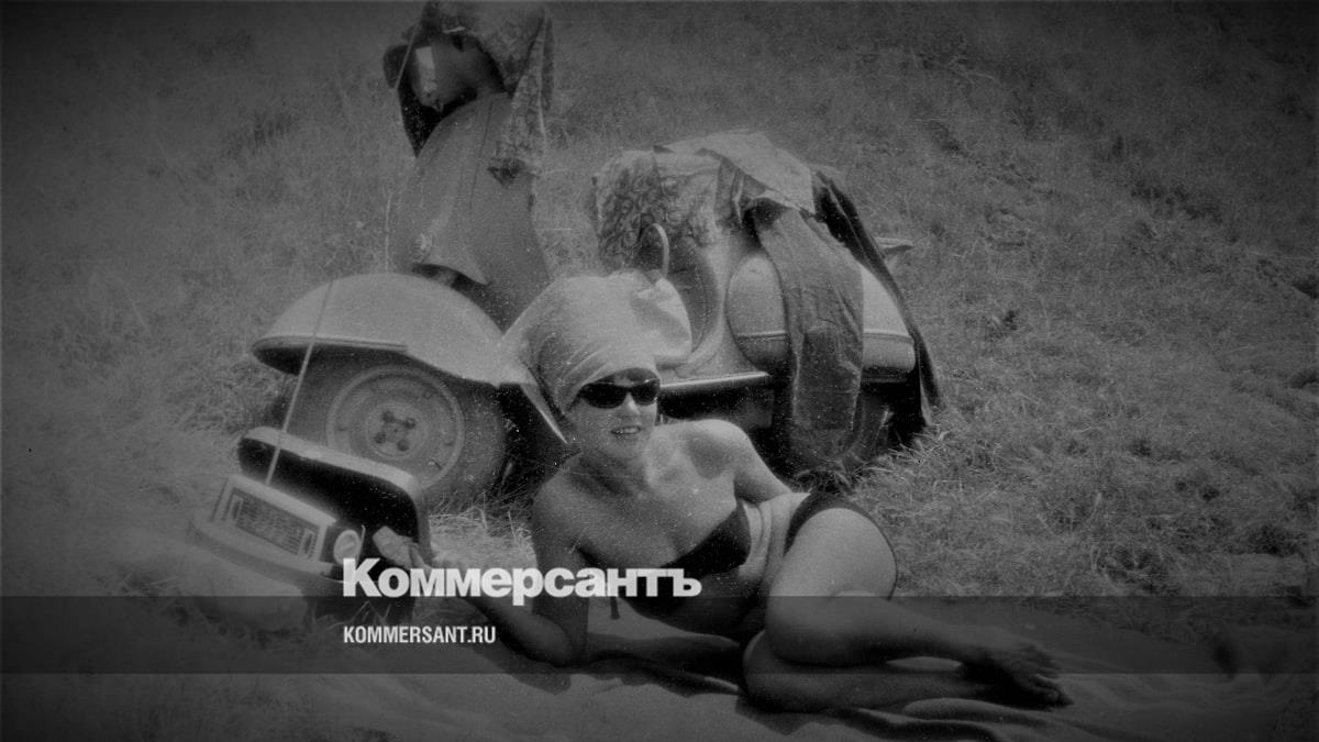 Это уже точно раскованные 1960-е: девушка позирует в немыслимом прежде купальнике бандокини. Это вариант бикини, где верх без бретелек, так что загорелое женское тело прикрывают лишь две узкие горизонтальные полоски. Юная, беспечная, сияющая. Платок на голове, судя по высоте, скрывает «бабетту» — модную прическу а ля Бриджит Бардо в фильме «Бабетта идет на войну». На мотороллере, кроме сброшенного платья, висят чьи-то джинсы, скорее всего, водителя «Вятки» и автора снимка.