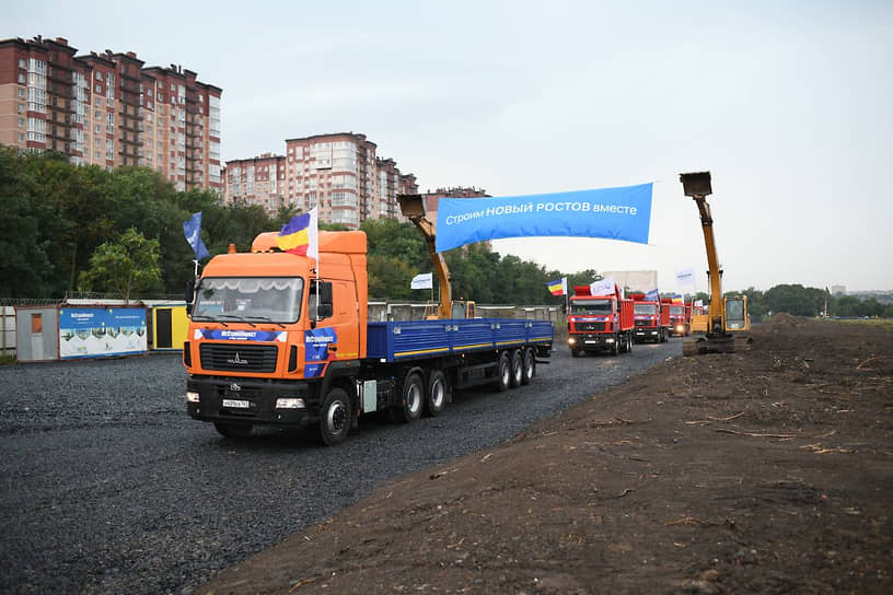 Главным событием дня стал официальный старт строительства «Нового Ростова». Его Василий Голубев и Юрий Иванов запустили вместе в торжественной обстановке. Мероприятие сопровождал эффектный проход строительной техники.