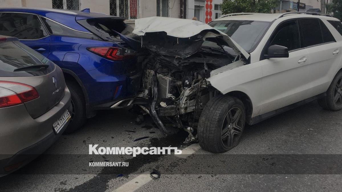 Около 12:00 45-летний водитель Mercedes в районе перекрестка улиц Республики и Профсоюзной снес дорожные ограждения, а затем устроил массовое ДТП. Столкнулись машины марок Lexus, Renault, Datsun, Toyota и две Mitsubishi.
