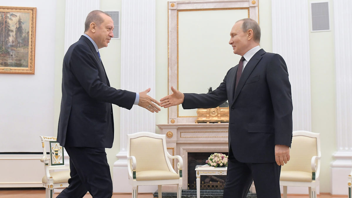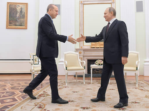 Реджеп Тайип Эрдоган и Владимир Путин во время встречи в марте 2020 года