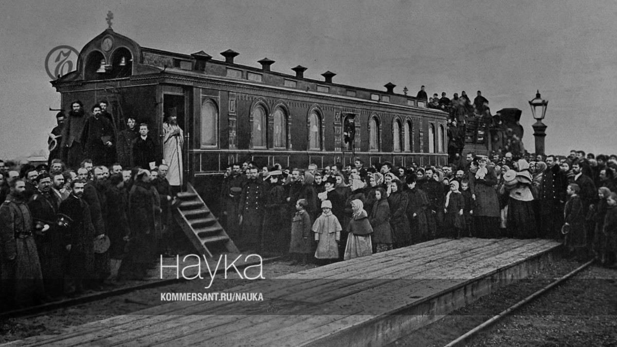 Служба возле вагона-церкви на Западно-Сибирской железной дороге. Фото из коллекции А. П. Чехова
