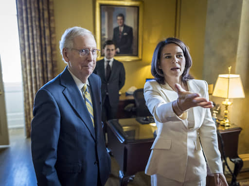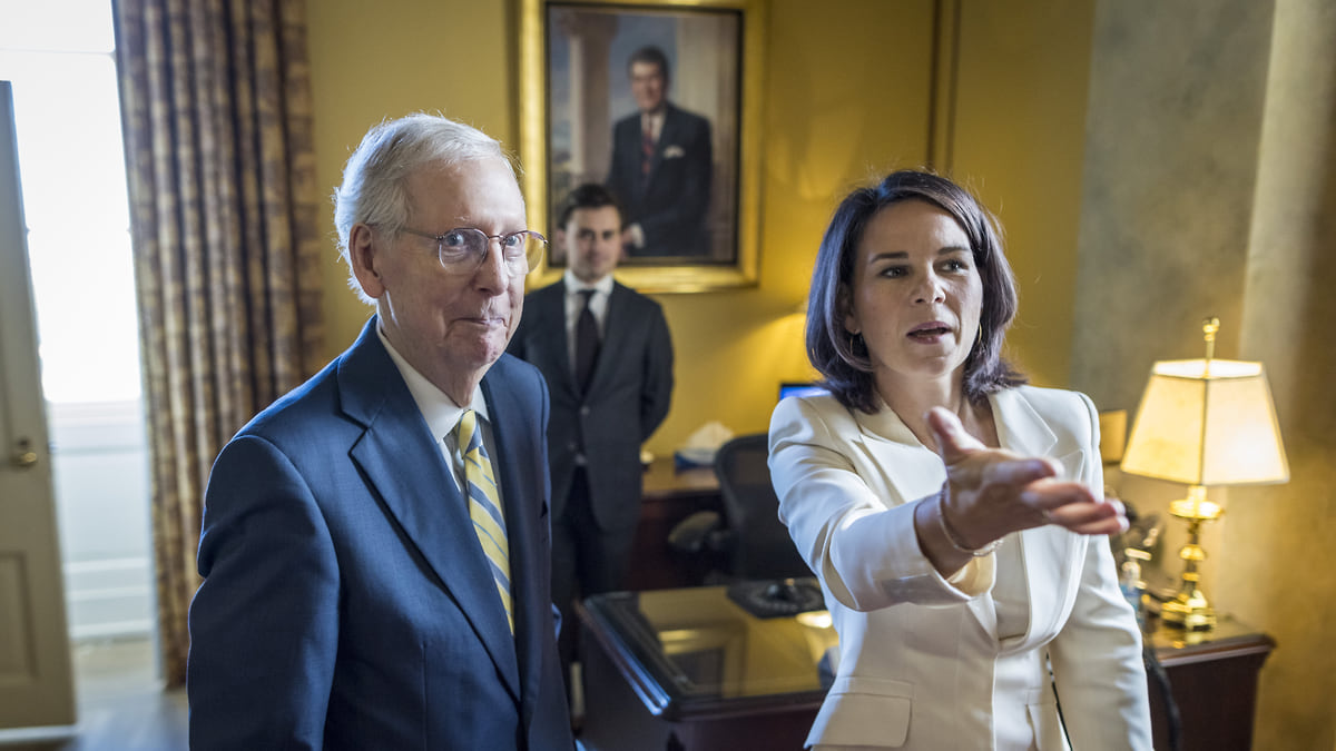 Лидер республиканцев в Сенате Митч Макконнелл (слева) и министр иностранных дел Германии Анналена Бербок
