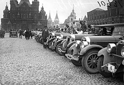 Я объехал всю Европу и всю Америку с точки зрения автомобилизации. Я считаю, что нам нужно категорически отказаться от Европы в отношении автомобилей. Я берусь в 30 мин. в Вашем кабинете привезти Вам части разобранных двигателей американских и европейских, и вы будете голосовать за американские двигатели. Мы покупали немецкий 'Бенц' и 'Мерседес Даймлер', ставили на наши шасси, немецкий 'Бенц' — на Ярославском заводе, но теперь мы знаем, что по цене американские двигатели стоят на 50% дешевле и на 50% лучше европейских. Как только вы дойдете до цены, это будет могила, потому что индивидуальное изготовление сугубо подчеркивается в отношении европейской индустрии. Мы взяли массовый мировой двигатель 'Форд', который дает три варианта машин: городскую легковую, полуторатонную и усиленную полуторатонную для обслуживания в военных условиях. На заводе АМО и Ярославском мы имеем два двигателя 'Геркулес' — 65 сил и 90 сил. Это является чрезвычайно большим достижением, что мы так пошли. Поэтому я считаю, что в отношении всех европейских марок нужно поставить крест. Как выйти из этого положения? Надо сказать, что европейские фирмы отнеслись к нам нехорошо, ни 'Пежо', ни 'Ситроен', ни 'Бюссинг' не желали с нами разговаривать, а теперь от них нет отбоя. В отношении них вопрос сейчас, несомненно, отпадает, а фирмой 'Крайслер' нам бросаться нельзя. У нас есть отдушина в связи с реорганизацией завода АМО, мы можем втиснуть туда 'Крайслера'. Вместо того чтобы делать 12 000 легковых машин с комбинированным двигателем 'Автокара', можно взять настоящий полнокровный двигатель. Мы не можем позволить себе роскоши привлечь фирму 'Бюик', но до 'Доджа' мы вполне доросли".