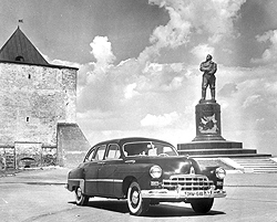 "Развивая достижения в экономике, автомобильный завод в Горьком занялся освоением еще одной модели, 'ЗИМ'. Буквы 'ЗИМ' означают 'Завод, названный в честь Молотова', чье имя широко известно в западном мире.