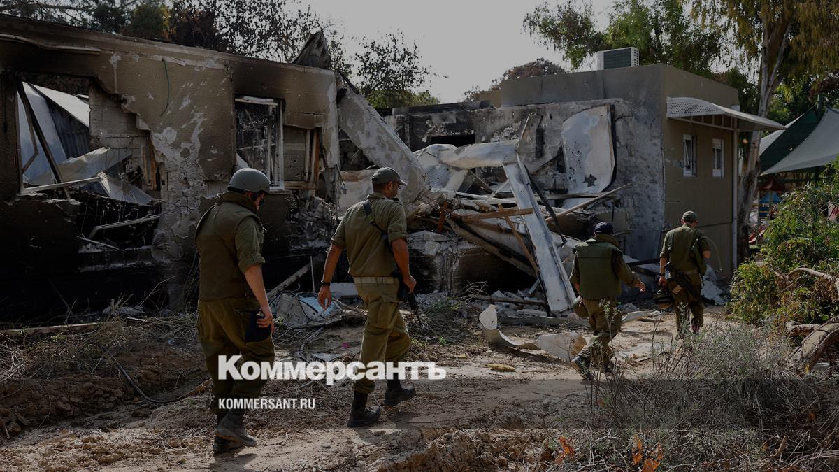 Израильские военные у разрушенных в результате атаки «Хамас» построек в кибуце Беэри