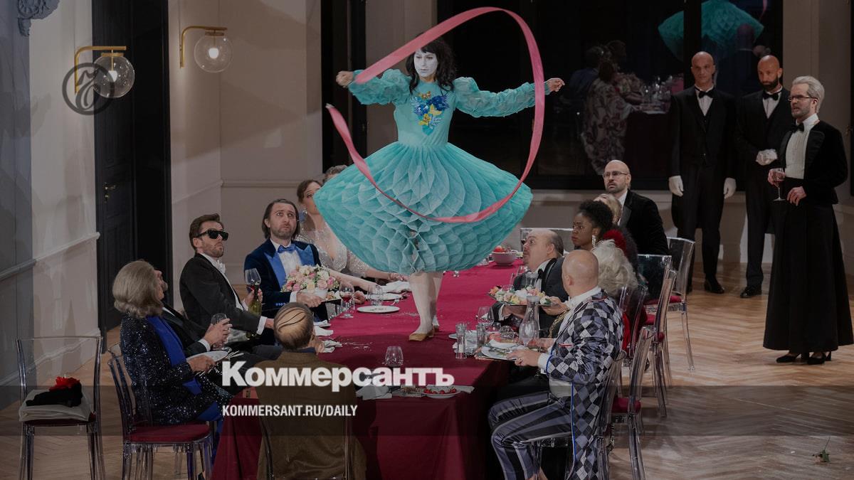 Черняков убирает то, что когда-то обеспечило произведению Уайльда—Штрауса репутацию «на грани пристойности»,— вязкую ориентальную декоративность, декадентское сочетание монументальности и истерики, фрейдистское сочетание соблазна и кровожадности. Вернее, не убирает, а, как сегодня говорят, обесценивает. Остается вот эта самая парадная гостиная, в которой гости на дне рождения у Ирода Антипы ведут бессвязный застольный разговор. Тетрарх в каком-то немыслимом розовом костюме сам же и напоминает именинный торт с кремовыми розочками — но и от его гостей так и несет гротескным «скромным обаянием».