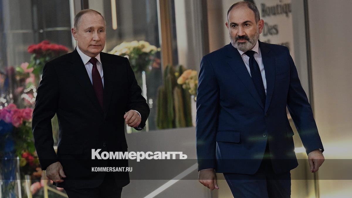 Владимир Путин (слева) и Никол Пашинян перед началом заседания Совета коллективной безопасности Организации Договора о коллективной безопасности в Армении в ноябре 2022 года
