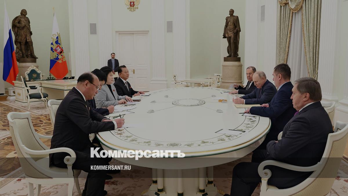 Президент России Владимир Путин (третий справа) и министр иностранных дел Корейской Народно-Демократической Республики (КНДР) Цой Сон Хи (третья слева) во время встречи в Кремле