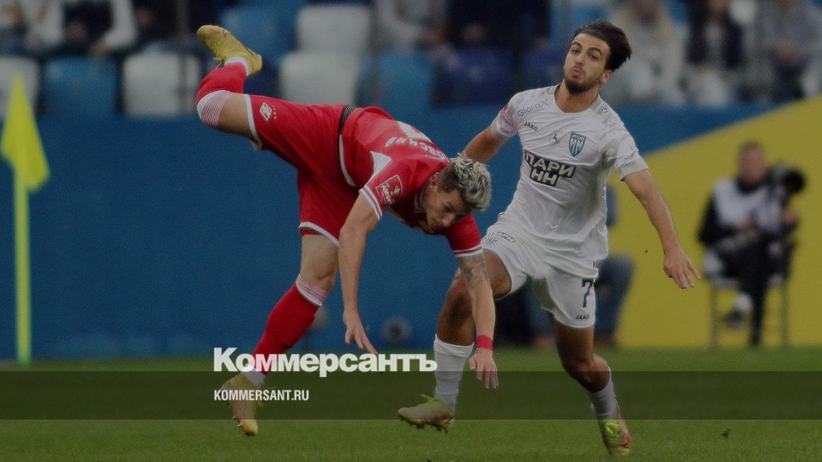 Полузащитник «Пари НН» Эдгар Севикян (в белой форме) во время игры московским клубом «Спартак М»