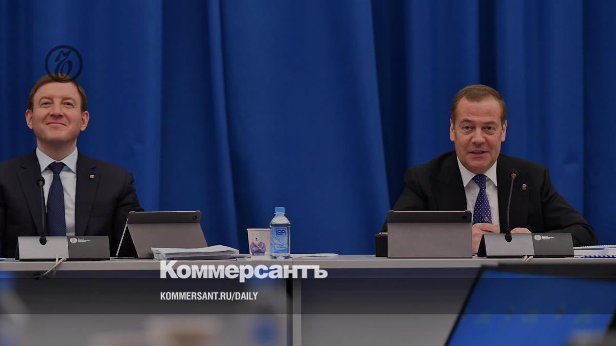 Секретарь генсовета партии «Единая Россия» Анатолий Турчак и председатель партии Дмитрий Медведев