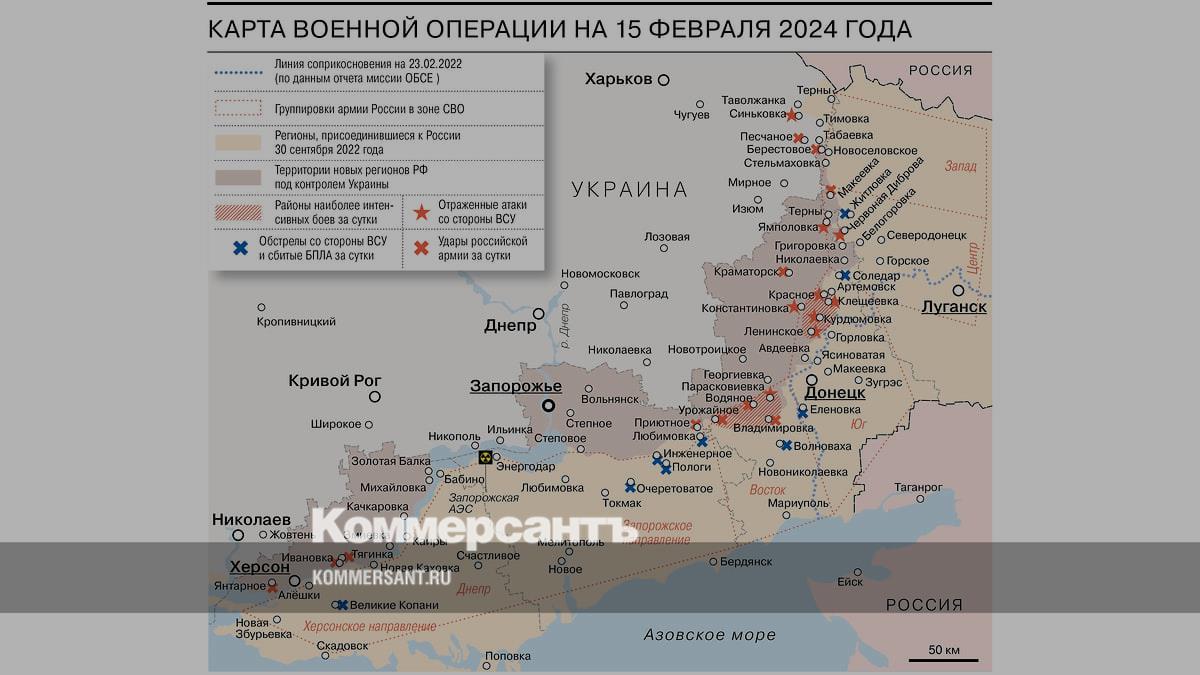 Карта военной операции на 15 февраля 2024 года