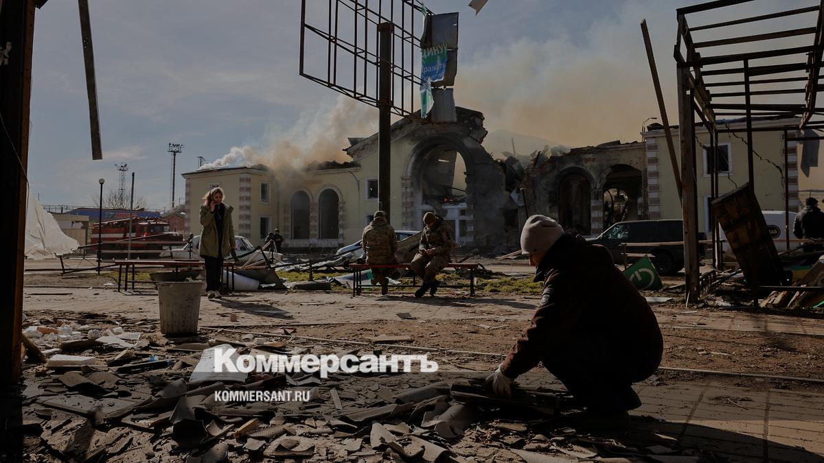 Разрушенный железнодорожный вокзал в Константиновке