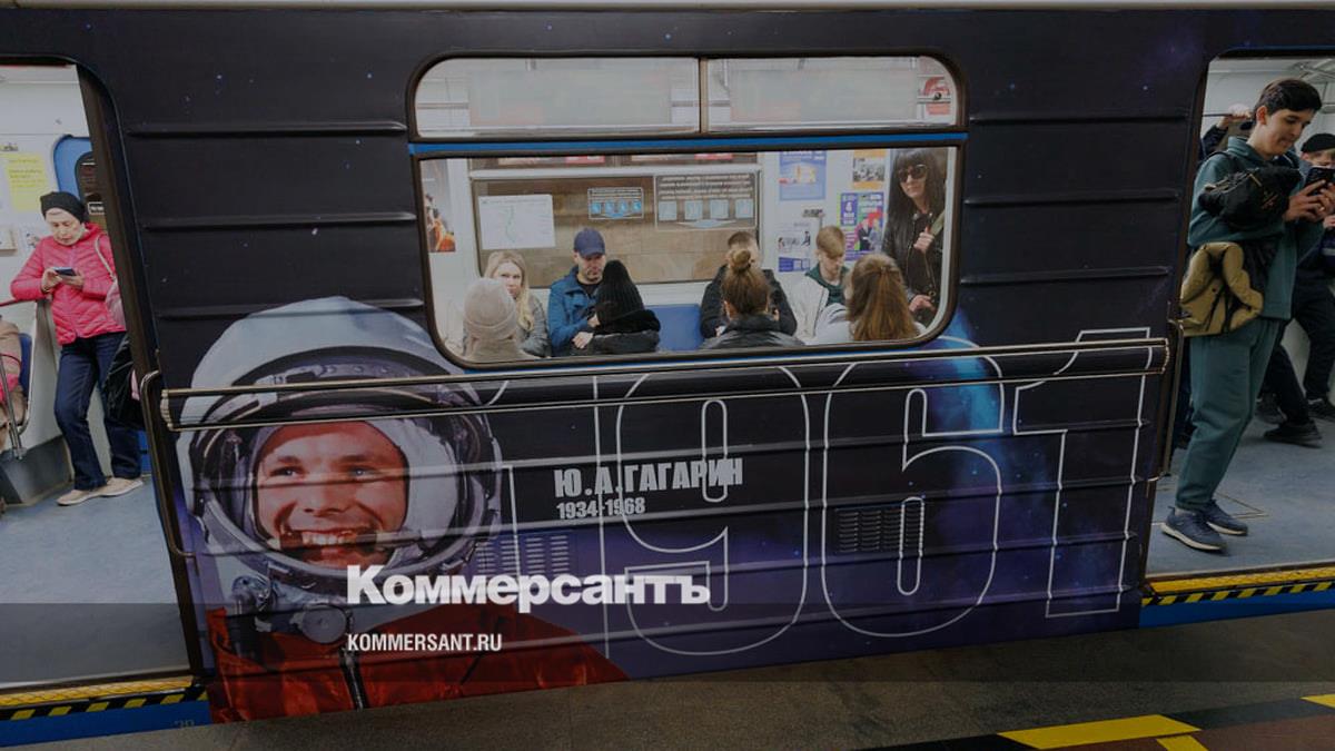 В Екатеринбурге на станции метро «Площадь 1905 года» запустили поезд в космическом стиле. Как сообщил корреспондент «Ъ-Урал», участие в запуске приняли три уральских космонавта: Сергей Прокопьев, Дмитрий Петелин и Андрей Федяев.