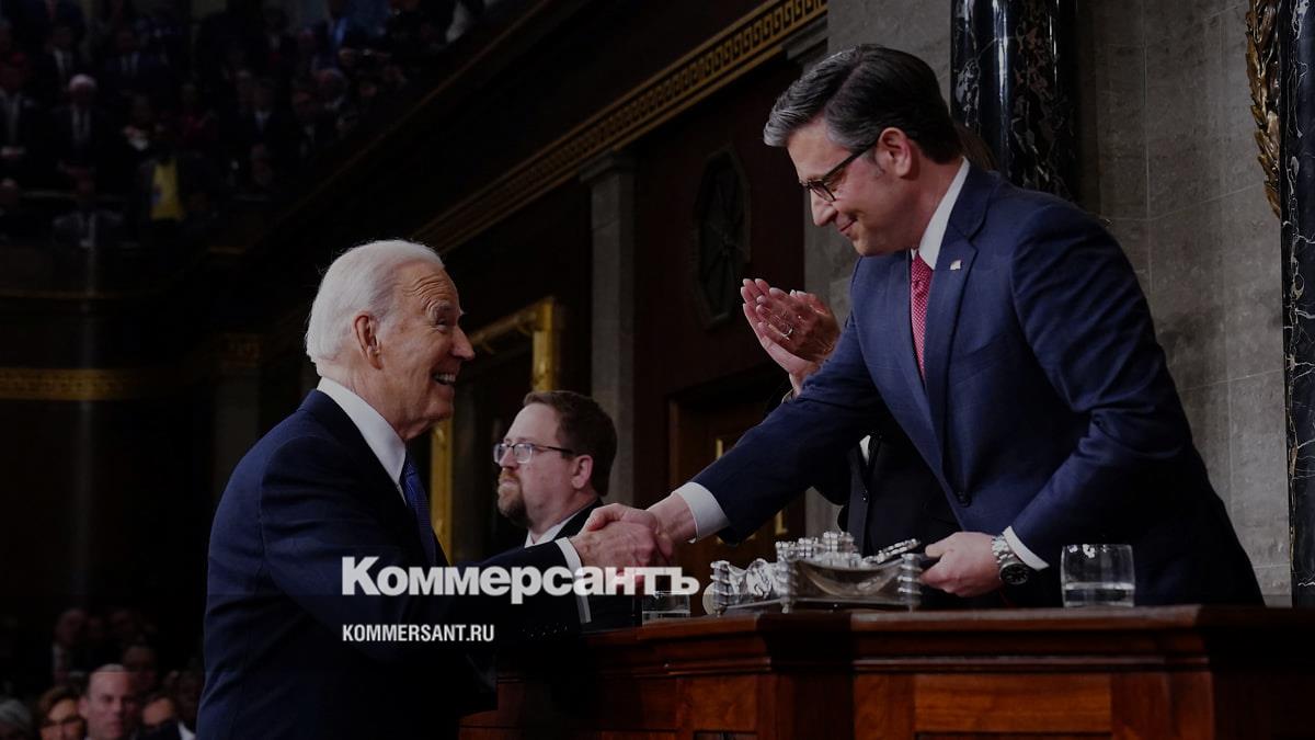Президент США Джо Байден и спикер Палаты представителей Майк Джонсон (справа)