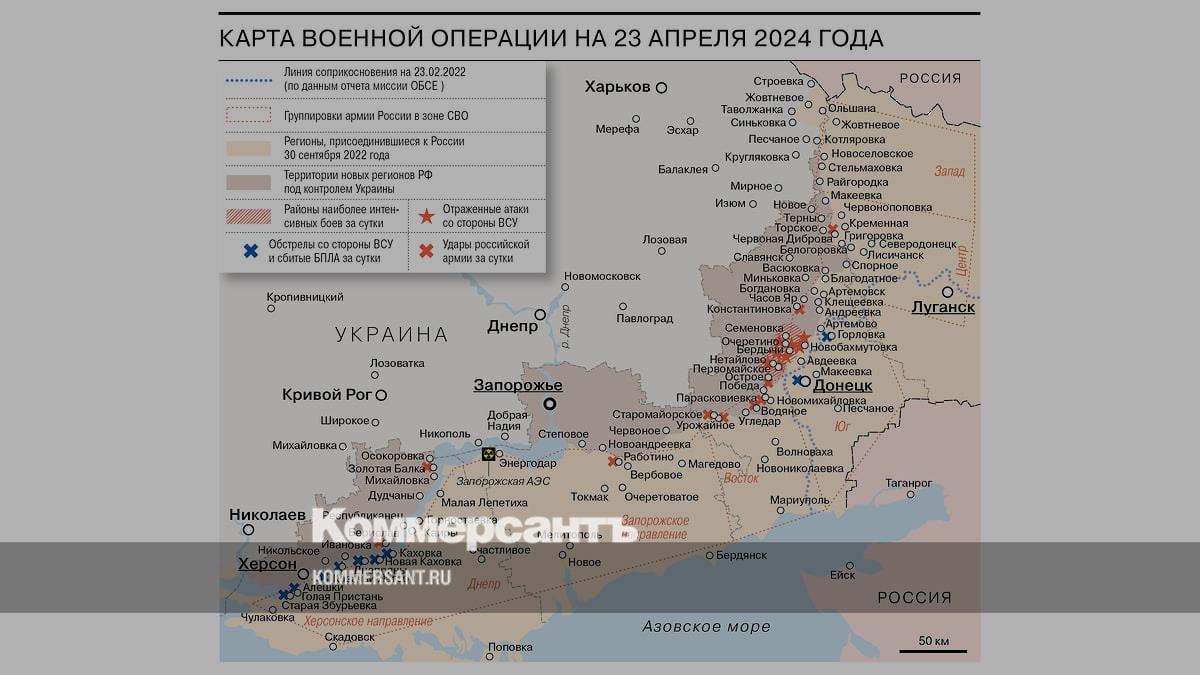 Карта военной операции на 23 апреля 2024 года