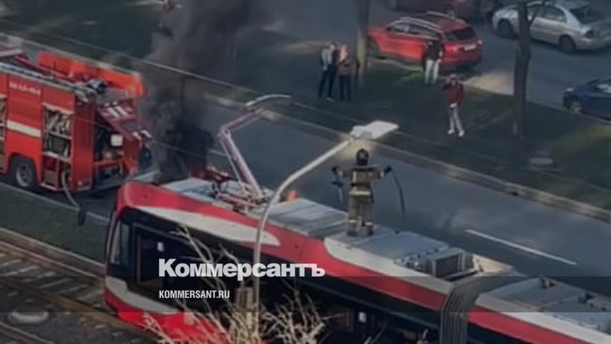 На проспекте Солидарности в Петербурге загорелся трамвай