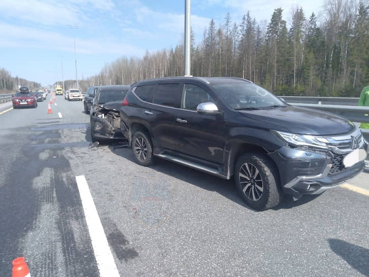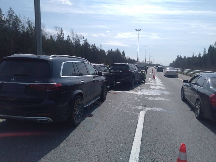 По данным «Фонтанки» со ссылкой на представителя управляющей компании ООО «Магистраль двух столиц», ДТП произошло около 09:55. При движении в направлении Москвы столкнулись шесть легковых автомобилей: Kia Ceed, Hyundai Tucson, Mitsubushu PajeroSport, Hyundai Santa FE, SsangYong Action, Mercedes Benz GLS400D. Как утверждают очевидцы, «догонялки» случились в левом ряду.
