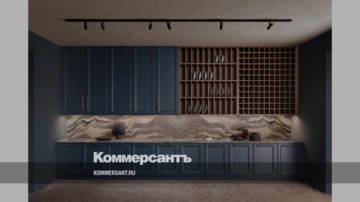 Другой важной премьерой L’Ottocento стал выпуск бестселлера бренда, модели Living, в отделке из вишневого дерева. Яркий глубокий цвет — вполне в духе моды на темное дерево. Тумбы и навесные шкафы, а также держатели для бутылок и стойка для тарелок, выполнены в оттенках ореха «каналетто», а для фартука и столешницы выбран кварцит насыщенного серо-синего цвета («оттенка полуночной синевы», как обозначили его представители бренда). Модель в новом образе легко и гармонично интегрируется в жилую зону.