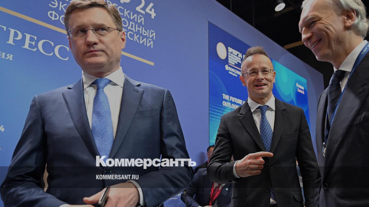 Слева направо: заместитель председателя правительства России Александр Новак, министр иностранных дел и внешнеэкономических связей Венгрии Петер Сийярто и председатель правления, генеральный директор ПАО «Газпром нефть» Александр Дюков