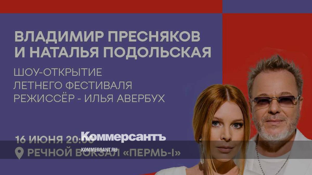 В Перми в рамках летнего фестиваля «Город встреч» 16 июня выступят Владимир Пресняков и Наталья Подольская. Как сообщает пресс-служба краевого правительства, на шоу-открытии выступят также более ста пермских артистов.