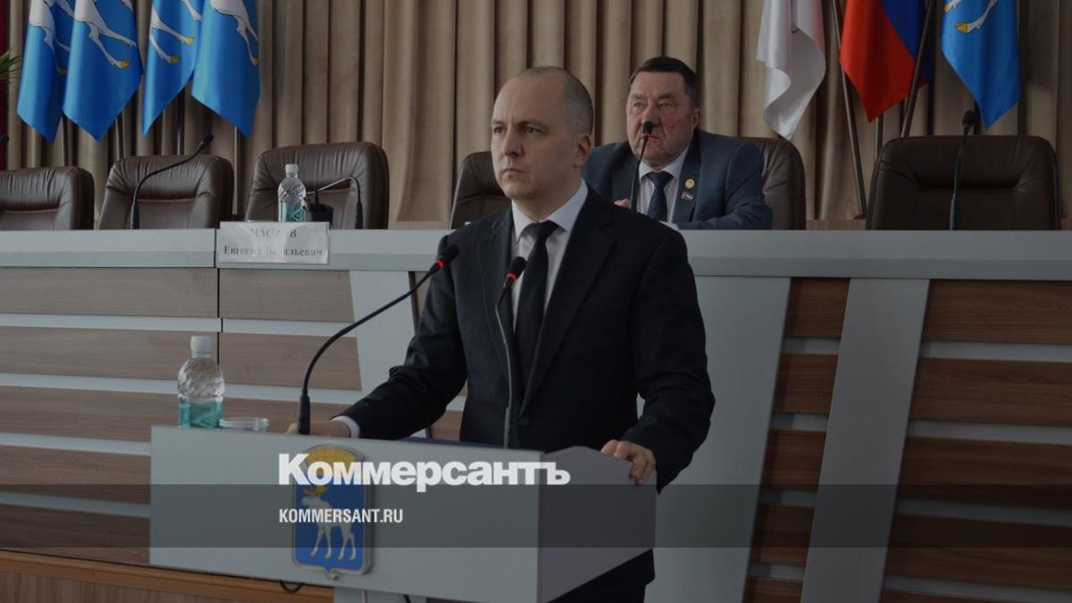 Евгений Маслов выступает перед депутатами городского собрания Йошкар-Олы (апрель 2024 года)