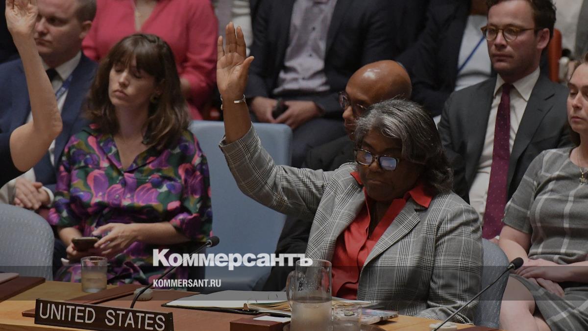Постоянный представитель США при ООН Линда Томас-Гринфилд голосует за резолюцию о прекращении огня в Газе (10 июня 2024 года)