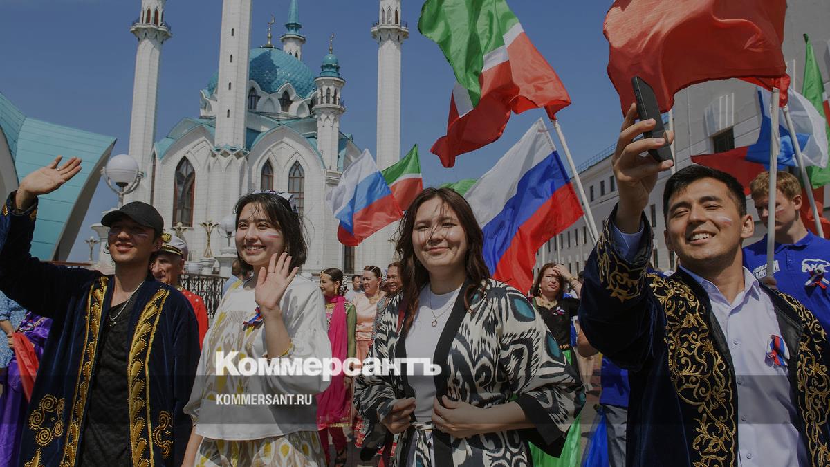В Казани состоялась традиционная акция ко Дню России «Парад дружбы». Парад начался у Спасской башни, участники прошли до пушечного двора, свернули к Кул Шарифу и вернулись ко входу. По пути они пели песни и танцевали. Фоторепортаж «Ъ-Казань».