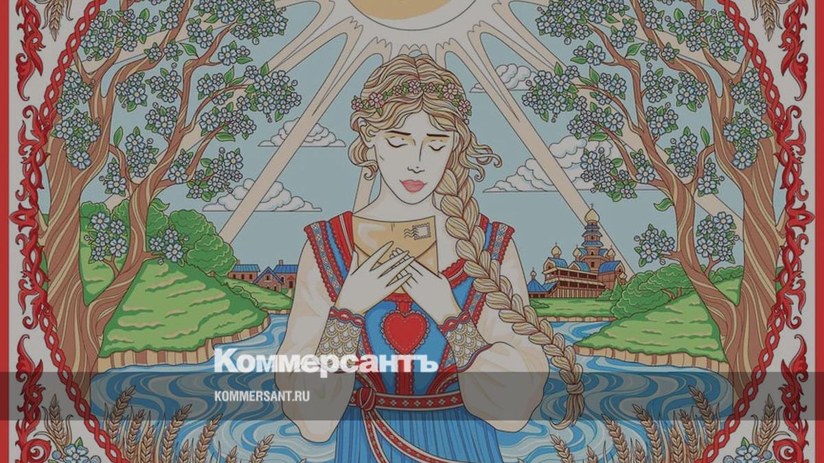Как рассказали представители Нины Ручкиной, на платке изображена девушка в традиционном наряде, которая склонила голову вниз, сложив руки на груди, в ее руках письмо от любимого. Вокруг расцветают яблони и груши, а над головой пролетает степной сизый орел.