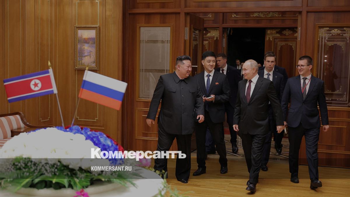 Президент России Владимир Путин и глава КНДР Ким Чен Ын начали переговоры, встреча проходит в резиденции Кымсусан, передает «Интерфакс». В числе представителей российской делегации — глава МИДа Сергей Лавров, пресс-секретарь Дмитрий Песков, глава Минобороны Андрей Белоусов.