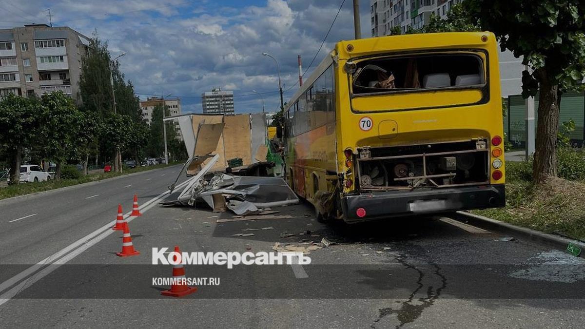 Грузовик врезался в стоящий автобус на улице Сабурова в Ижевске