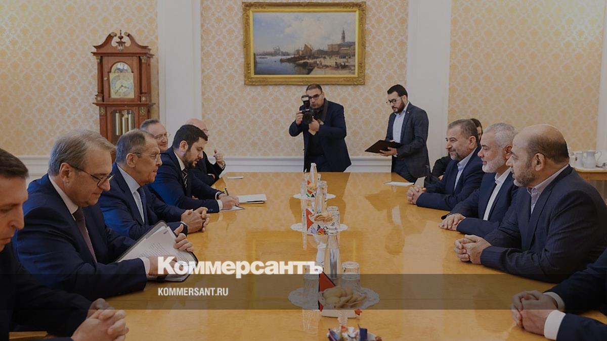 Сергей Лавров (третий слева) и Исмаил Хания (третий справа) на встрече в Москве 12 сентября 2022 года
