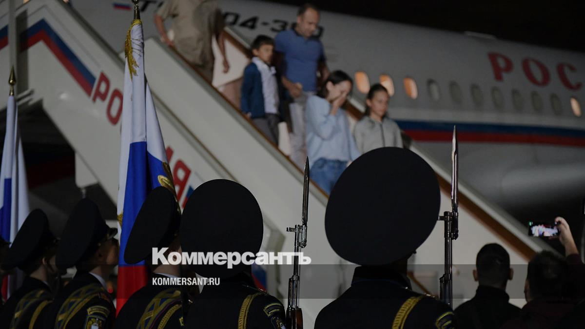 Церемония встречи вернувшихся после обмена россиян в аэропорту Внуково-2