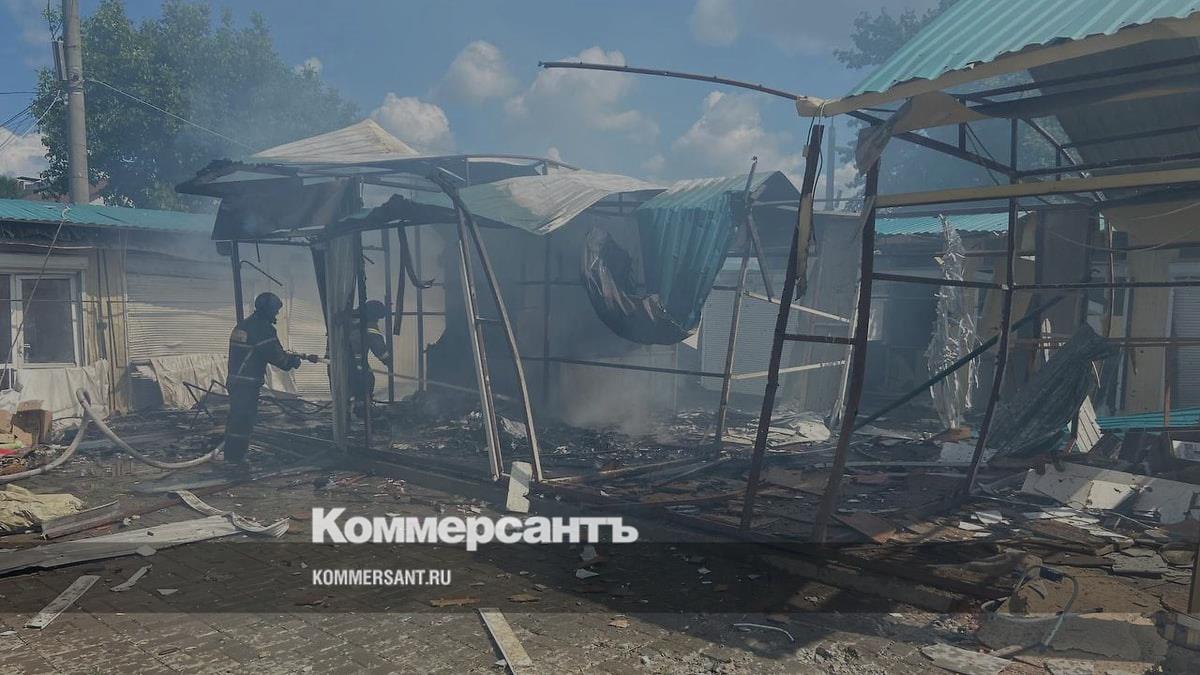Еще один мирный житель получил ранение голени. Сейчас пострадавшего доставляют в больницу в Белгород. В результате обстрела в Шебекино загорелся торговый модуль на рынке. Пожар уже потушили. Судя по фотографии с места, которую господин Гладков опубликовал в своем Telegram-канале, модуль полностью разрушен. В трех многоквартирных домах в Шебекино в результате обстрела выбило окна.