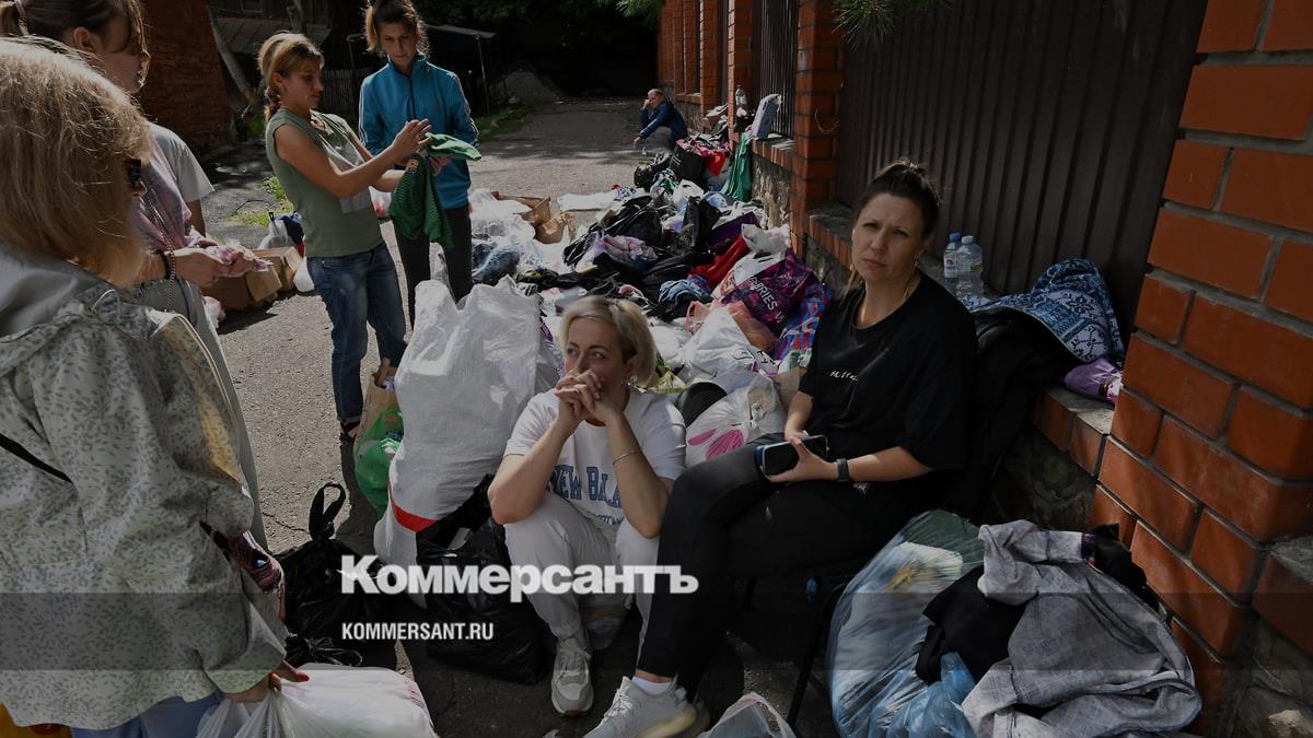 Раздача гуманитарной помощи в курском НКО «Домик добрых дел» для эвакуированных жителей приграничных районов